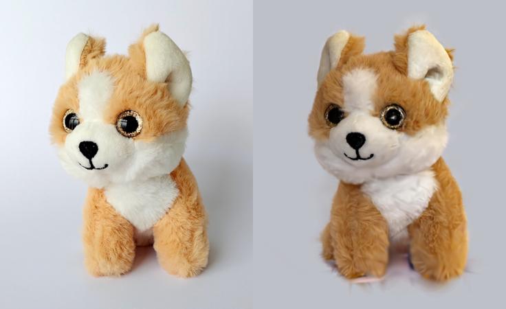 Реальная плюшевая игрушка (слева) и её реконструированная 3D Gaussian Splatting модель (справа).