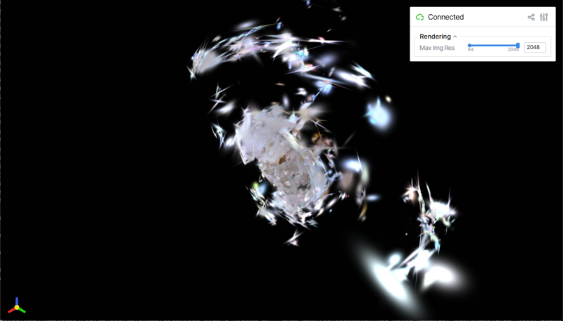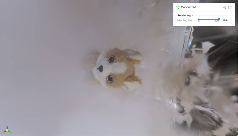 Вьювер отображает обученную Gaussian Splatting модель. Вокруг основного объекта часто появляются «плавающие» артефакты. В следующем разделе, Редактирование 3D Gaussian Splatting модели в SuperSplat, показано, как очистить и постобработать модель для более удобной визуализации или дальнейшего использования.