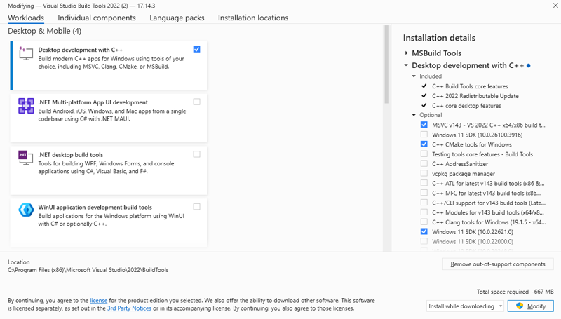 - MSVC v143 - VS 2022 C++ x64/x86 build tools
